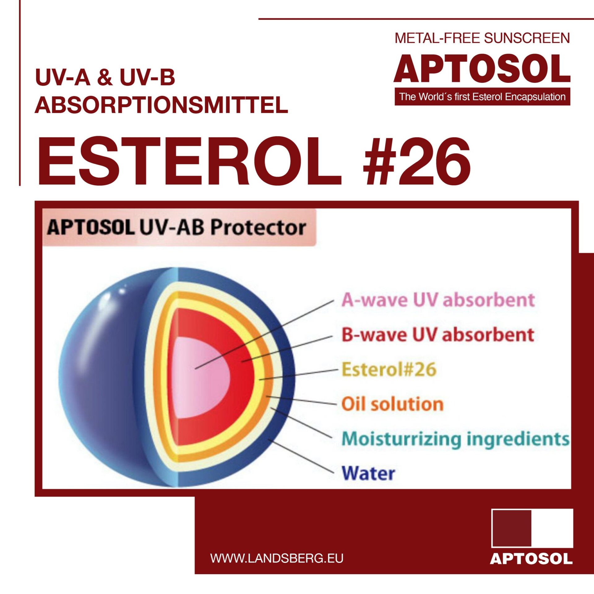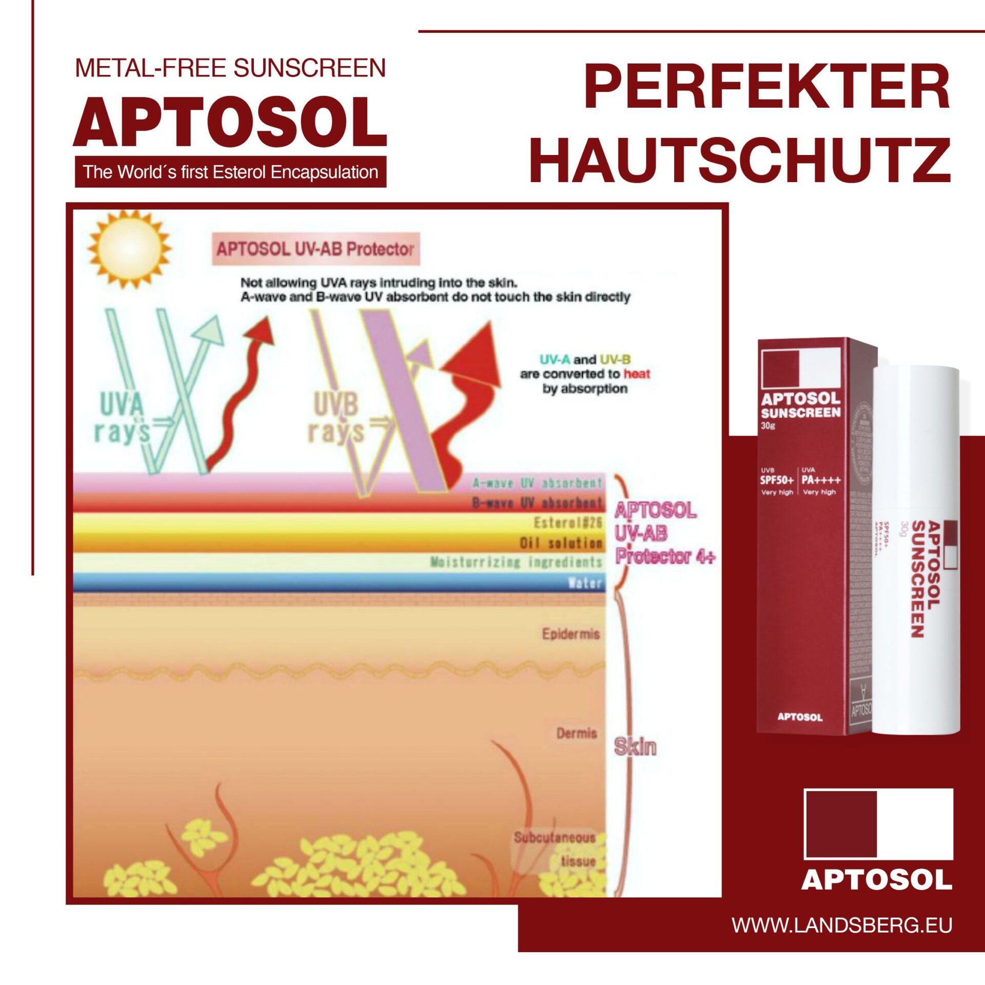 APTOSOL™ ist eine innovative Weltneuheit in der Kategorie Sonnenschutz. Im Gegensatz zu herkömmlichen Standards basiert das einzigartige Premiumprodukt auf einer speziellen Öllösung (Esterol Nr. 26), die einen lückenlosen UV-Schutz der Haut sicherstellt.